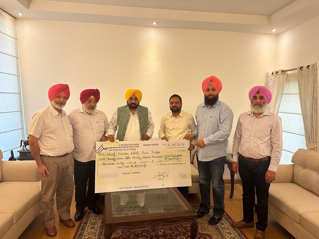 Employees of Co-operative Banks contributed Rs 39.33 lakh in Chief Minister’s relief fund by handing over the cheque to Chief Minister Bhagwant Singh Mann.