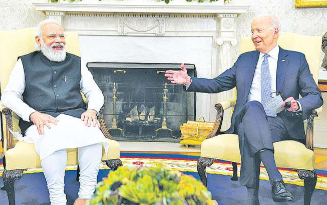 वाशिंगटन /सान फ्रांसिस्को, 25 सितम्बर (प्रेस की ताकत न्यूज़ डेस्क)-संयुक्त रास्ट्र के शिखर सम्मेलन को संबोधन करन के लिए अमरीका पहुँचे प्रधान मंत्री नरिन्दर मोदी की तरफ से वाइट हाऊस में अमरीकी राशटरपती जो बाईडन के साथ अपनी पहली दुवल्ली मीटिंग की गई, जिस दौरान दोनों नेताओं की तरफ से भारत और अमरीका के संबंधों को ओर मज़बूत बनाने पर ज़ोर दिया गया |मीटिंग दौरान खुले हिंद प्रशांत क्षेत्र, कोविड -19, लोकतंत्रीय कदरा कीमतों, जलवायु तबदीली, आर्थिक सहयोग, अफगानिस्तान समेत अलग -अलग तरजीही मुद्दों पर विचार चर्चा की गई |बाईडन ने कहा कि विशव अगले हफ़्ते महात्मा गांधी का जन्म दिन मनाएगा, जिन का अहिंसा, सत्कार और सहणशीलता का संदेश आज शायद पहले की अपेक्षा ज़्यादा प्रसंगिक हो गया है |बाईडन ने कहा कि हम दोनों देशों बीच संबंधों के नये अध्याय को देख रहे हाँ और दुनिया के दो सब से बड़े लोकतंतरें के बीच सम्बन्ध ओर मज़बूत और नज़दीक होने चाहिएं |उन कहा कि मैं लंबे समय से विस्वास करता हैं कि अमरीका -भारत सम्बन्ध बहुत सी विशव चुणौतियें को हल करन में मदद कर सकते हैं |बाईडन ने कहा कि मैं 2006 में ही कह दिया था कि 2020 तक अमरीका और भारत दुनिया के सब के पास के देशों में शामिल होंगे और आज हम सब से मुशकल चुणौतियें का सामना करते अमरीका -भारत संबंधों के इतिहास का एक अध्याय आरंभ कर रहे हैं |प्रधान मंत्री मोदी ने बाईडन को कहा कि हम इस सदी के तीसरे दशक की शुरूआत में मिल रहे हाँ और आपकी लीडरशिप निश्चित रूप में इस में महत्वपूर्ण भूमिका निभाएगी कि यह दहाई कैसा होगा |उन कहा कि भारत और अमरीका की दोस्ती को ओर गहरा करन के लिए बीज बीजे गए हैं तो मुझे खुसी है कि भारतीय प्रवासी अमरीका की तरक्की में सक्रिय योगदान डाल रहे हैं |उन कहा कि हमें अपनी प्रतिभा का प्रयोग और ज्यादा विशवव्यापी भलाई और तकनीक का लाभ लेने के लिए करनी चाहिए |प्रधान मंत्री ने कहा कि आने वाले दशक में भारत -अमरीका संबंधों में व्यापार एक महत्वपूर्ण कारक होगा पर इस बात को ध्यान में रखते क्षेत्र में बहुत कुछ किया जाना बाकी है |उन कहा कि दोनों देश बड़ी चुणौतियें को मिलकर हरा सकते हैं |इस साल जनवरी में अमरीका के वें राशटरपती बनने उपरांत जो बाईडन की प्रधान मंत्री नरिन्दर मोदी के साथ यह पहली मुलाकात है, जबकि प्रधान मंत्री नरिन्दर मोदी का 2014 में प्रधान मंत्री बनने के बाद वीं बार अमरीका का दौरा कर रहे हैं |इस मौके दोनों नेताओं की तरफ से भारत और अमरीका बीच गहरे संबंधों को मज़बूत करन, एक खुले और स्वतंत्र हिंद -प्रशांत क्षेत्र को कायम रखें, कोविड -19 के साथ पूर करने से ले कर जलवायु तबदीली तक हर मुद्दे पर सहयोग बढ़ाने पर सहमति प्रकट की गई |