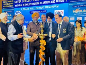नई दिल्ली 22 सितम्बर (मनमोहन सिंह) नेशनल इंटीग्रेटेड फोरम ऑफ आर्टिस्ट्स एंड एक्टिविस्ट्स (निफा) द्वारा सिल्वर जुबली फाउंडेशन समारोह आज नई दिल्ली के भारत मंडपम के प्लेनरी हॉल में अपार उत्साह और गर्मजोशी के साथ मनाया गया।