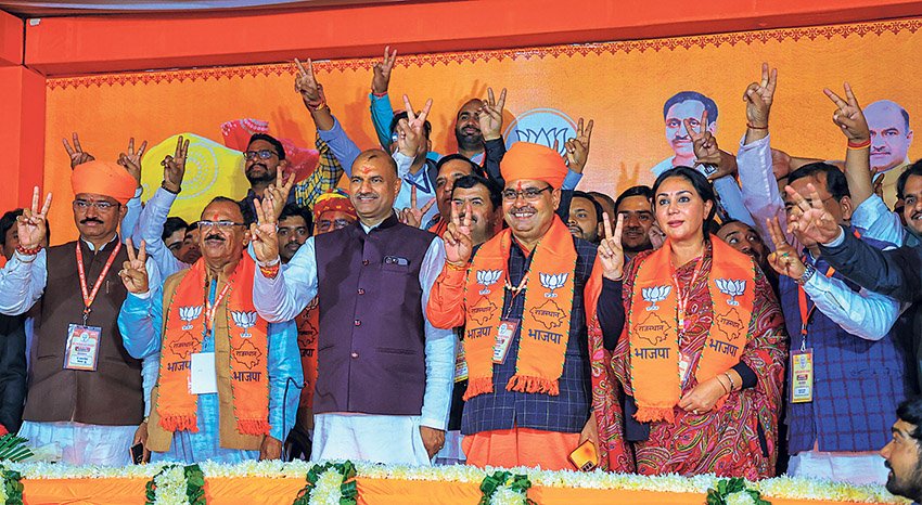 राज्यों में चुनावी जीत के बाद सत्ता की कमान सौंपने में हमेशा चौंकाने वाले भाजपा के शीर्ष नेतृत्व ने अब राजस्थान के मामले में भी ऐसा ही किया है। मध्य प्रदेश में मोहन यादव और छत्तीसगढ़ में विष्णुदेव साय को कमान सौंपने के बाद राजस्थान में राष्ट्रीय स्वयंसेवक संघ (आरएसएस) से जुड़े और पहली बार के विधायक भजनलाल शर्मा को नया मुख्यमंत्री घोषित किया गया है।