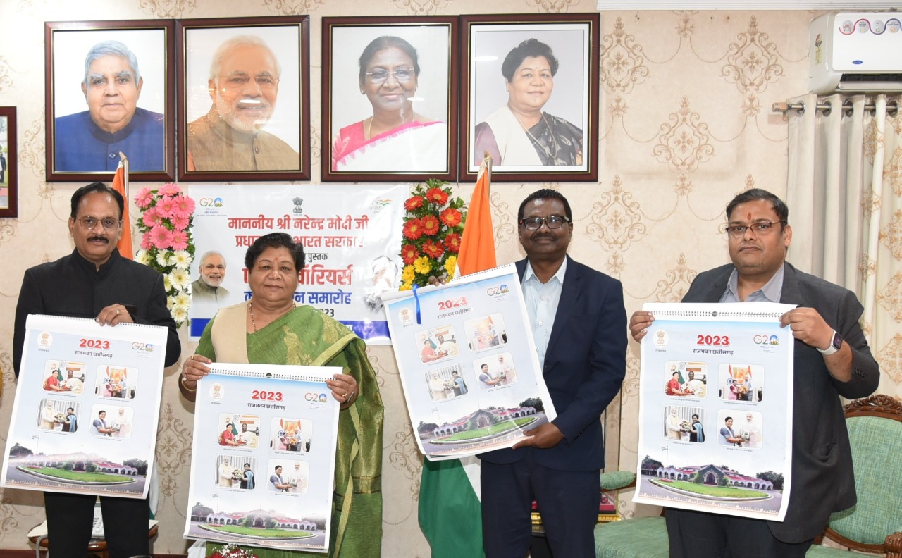 छिंदवाड़ा(सुशील सिंह परिहार)- रायपुर, 18 जनवरी 2023/ राज्यपाल सुश्री अनुसुईया उइके ने आज राजभवन के वार्षिक कैलेण्डर-2023 का विमोचन किया। वार्षिक कैलेण्डर में राज्यपाल सुश्री उइके की राष्ट्रपति, प्रधानमंत्री एवं अन्य गणमान्य व्यक्तियों से भेंट के अलावा प्रदेश के विभिन्न जिलों के कार्यक्रमों तथा देश के अन्य राज्यों के प्रवास से जुड़े छायाचित्र, कुलाधिपति के रूप में कार्यों तथा राजभवन सचिवालय की गतिविधियां आकर्षक तरीके से प्रकाशित की गई हैं।