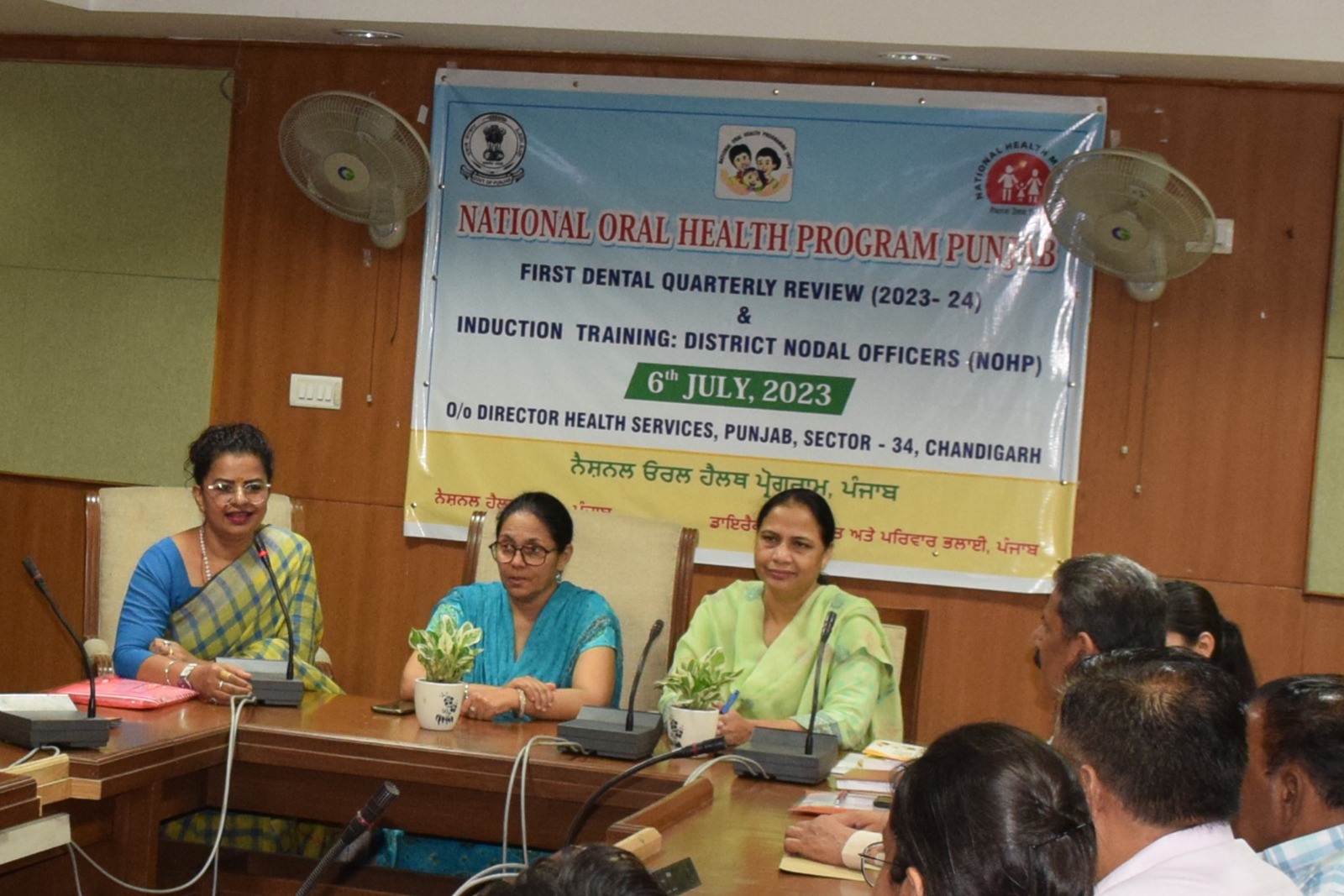 पंजाब राज्य में दाँतों सम्बन्धी स्वास्थ्य सेवाओं को मज़बूत करने के लिए, डायरैक्टर स्वास्थ्य एवं परिवार कल्याण विभाग पंजाब के चंडीगढ़ स्थित मुख्यालय में नेशनल ओरल हैल्थ प्रोग्राम ( एन. ओ. एच. पी.) पंजाब के अधीन नये बनाऐ गए ज़िला नोडल अफ़सरों (डी. एन. ओज़) के लिए एक तिमाही दाँतों की समीक्षा मीटिंग कम इंडकशन ट्रेनिंग का आयोजन किया गया। इस समीक्षा मीटिंग की अध्यक्षता डायरैक्टर स्वास्थ्य एवं परिवार भलाई डॉ. आदर्शपाल कौर और डायरैक्टर स्वास्थ्य सेवाएं (प. भ.) डाः रविन्द्र पाल कौर ने सांझे तौर पर की।