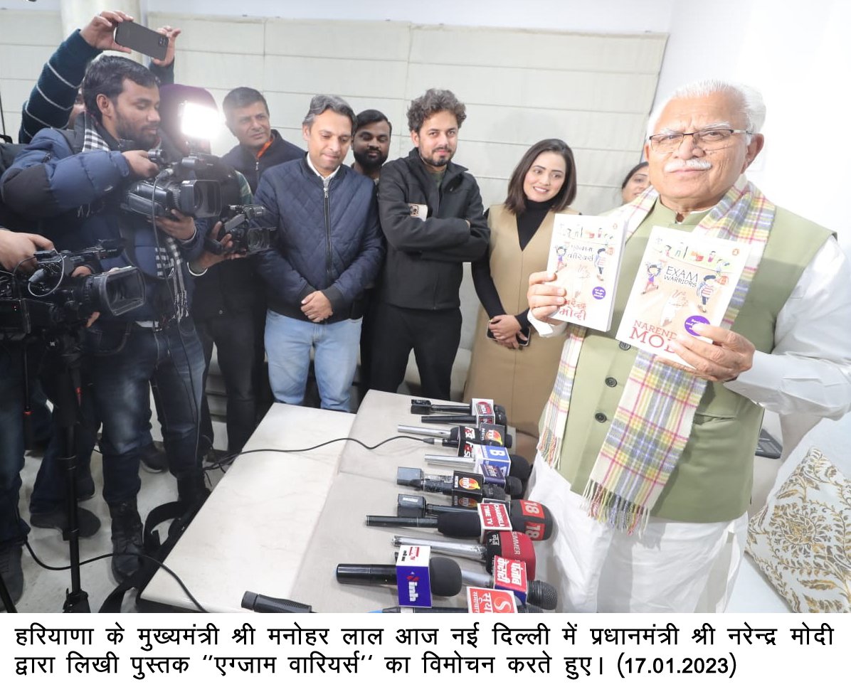 नई दिल्ली,17-01-23(प्रेस की ताकत ):हरियाणा के मुख्यमंत्री श्री मनोहर लाल आज नई दिल्ली में प्रधानमंत्री श्री नरेन्द्र मोदी द्वारा लिखी पुस्तक ‘‘एग्जाम वारियर्स’’ का विमोचन करते हुए।