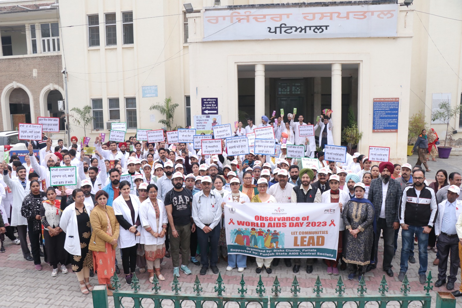 ਦਿਸ਼ਾ ਕਲਸਟਰ, ਪਟਿਆਲਾ ਪੰਜਾਬ ਸਟੇਟ ਏਡਜ਼ ਕੰਟਰੋਲ ਸੋਸਾਇਟੀ ਅਤੇ ਏ.ਆਰ.ਟੀ ਕੇਂਦਰ ਪਟਿਆਲਾ ਵੱਲੋਂ ਕਰਵਾਈ ਜਾਗਰੂਕਤਾ ਰੈਲੀ ਰਾਜਿੰਦਰਾ ਹਸਪਤਾਲ, ਪਟਿਆਲਾ ਤੋਂ ਫੁਹਾਰਾ ਚੌਂਕ ਪਟਿਆਲਾ ਤੱਕ ਕੱਢੀ ਗਈ। ਇਸ ਰੈਲੀ ਵਿੱਚ ਵਿਸ਼ਵ ਏਡਜ਼ ਦਿਵਸ ਨੂੰ ਸਮਰਪਿਤ ਥੀਮ “ਕਮਿਊਨਿਟੀ ਦੀ ਹਿੱਸੇਦਾਰੀ” ਨੂੰ ਮੁੱਖ ਰੱਖਦੇ ਹੋਏ ਇਹ ਪੈਦਲ ਮਾਰਚ ਕੀਤਾ ਗਿਆ। ਇਸ ਰੈਲੀ ਵਿੱਚ ਲਗਭਗ 200 ਤੋਂ 250 ਵਿਦਿਆਰਥੀਆਂ ਨੇ ਹਿੱਸਾ ਲਿਆ।