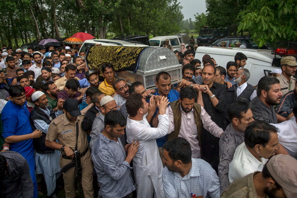 ਜੰਮੂ-ਕਸ਼ਮੀਰ – ਰਾਈਜ਼ਿੰਗ ਕਸ਼ਮੀਰ ਦੇ ਸੰਪਾਦਕ ਸ਼ੁਜਾਤ ਬੁਖ਼ਾਰੀ ਨੂੰ ਅੱਜ ਉਨ੍ਹਾਂ ਦੇ ਜੱਦੀ ਪਿੰਡ ਵਿੱਚ ਸਪੁਰਦ ਏ ਖ਼ਾਕ ਕਰ ਦਿੱਤਾ ਗਿਆ। ਕਸ਼ਮੀਰ ਦੇ ਸੀਨੀਅਰ ਪੱਤਰਕਾਰ ਨੂੰ ਹੰਝੂਆਂ ਭਰੀ ਅੰਤਿਮ ਵਿਦਾਇਗੀ ਦੇਣ ਲਈ ਜਨਾਜ਼ੇ ਵਿੱਚ ਉਨ੍ਹਾਂ ਦੇ ਦੋਸਤਾਂ ਮਿੱਤਰਾਂ ਤੋਂ ਇਲਾਵਾ ਲੋਕਾਂ ਦਾ ਵਿਸ਼ਾਲ ਇਕੱਠ ਜੁੜਿਆ। ਇਨ੍ਹਾਂ ਵਿੱਚ ਪੱਤਰਕਾਰ ਭਾਈਚਾਰਾ ਵੱਡੀ ਗਿਣਤੀ ਵਿੱਚ ਸ਼ਾਮਲ ਹੋਇਆ। ਇਸ ਦੌਰਾਨ ਇਸ ਹੱਤਿਆ ਕਾਂਡ ਸਬੰਧੀ ਜੰਮੂ ਕਸ਼ਮੀਰ ਪੁਲੀਸ ਨੇ ਇੱਕ ਸ਼ੱਕੀ ਨੂੰ ਗ੍ਰਿਫ਼ਤਾਰ ਕਰ ਲਿਆ ਹੈ। ਸ਼ੱਕੀ ਦੀ ਪਛਾਣ ਜ਼ੁਬੈਰ ਕਾਦਰੀ ਵਜੋਂ ਹੋਈ ਹੈ। ਸ਼ੁਜਾਤ ਬੁਖ਼ਾਰੀ ਜਿਨ੍ਹਾਂ ਨੂੰ ਉਨ੍ਹਾਂ ਦੇ ਦਫਤਰ ਦੇ ਬਾਹਰ ਕੱਲ੍ਹ ਸ੍ਰੀਨਗਰ ਵਿੱਚ ਗੋਲੀਆਂ ਮਾਰ ਕੇ ਦੋ ਸੁਰੱਖਿਆ ਗਾਰਦਾਂ ਸਮੇਤ ਮਾਰ ਦਿੱਤਾ ਗਿਆ ਸੀ, ਨੂੰ ਅਖ਼ਬਾਰ ‘ਰਾਈਜ਼ਿੰਗ ਕਸ਼ਮੀਰ’ ਨੇ ਪਹਿਲੇ ਸਫ਼ੇ ਉੱਤੇ ਬਲੈਕ ਐਂਡ ਵਾਈਟ ਫੋਟੋਆਂ ਜਿਨ੍ਹਾਂ ਨੂੰ ਕਾਲਾ ਪਿਛੋਕੜ ਦਿੱਤਾ ਗਿਆ ਸੀ, ਪਾ ਕੇ ਆਪਣੇ ਮੁੱਖ ਸੰਪਾਦਕ ਨੂੰ ਸ਼ਰਧਾਂਜਲੀ ਭੇਟ ਕੀਤੀ। ਰਾਈਜ਼ਿੰਗ ਕਸ਼ਮੀਰ ਜੋ ਆਪਣੀ ਬੇਬਾਕੀ ਕਰਕੇ ਜਾਣਿਆਂ ਜਾਂਦਾ ਹੈ, ਨੇ ਇਹ ਸੰਦੇਸ਼ ਦਿੱਤਾ ਹੈ ਕਿ ਉਹ ਬੁਜ਼ਦਿਲਾਂ ਤੋਂ ਡਰਨ ਵਾਲਾ ਨਹੀਂ ਹੈ। ਅਖ਼ਬਾਰ ਨੇ ਆਪਣੇ ਸੰਪਾਦਕ ਨੂੰ ਸ਼ਰਧਾਂਜਲੀ ਭੇਟ ਕਰਦਿਆਂ ਲਿਖਿਆ ਹੈ ਕਿ ਤੁਸੀਂ ਹਮੇਸ਼ਾਂ ਸਾਨੂੰ ਇੱਕ ਮਾਰਗ ਦਰਸ਼ਕ ਵਜੋਂ ਸੇਧ ਦਿੰਦੇ ਰਹੋਗੇ। ਅਸੀਂ ਸੱਚ ਦੱਸਣ ਲਈ ਤੁਹਾਡੇ ਵੱਲੋਂ ਅਪਣਾਏ ਅਸੂਲਾਂ ਉੱਤੇ ਚੱਲਦੇ ਰਹਾਂਗੇ। ਅਸੀਂ ਉਨ੍ਹਾਂ ਬੁਜ਼ਦਿਲਾਂ ਤੋਂ ਡਰਨ ਵਾਲੇ ਨਹੀਂ ਹਾਂ ਜਿਨ੍ਹਾਂ ਨੇ ਤੁਹਾਨੂੰ ਸਾਡੇ ਤੋਂ ਸਦਾ ਲਈ ਖੋਹ ਲਿਆ ਹੈ। ਪਰਮਾਤਮਾ ਤੁਹਾਡੀ ਆਤਮਾ ਨੂੰ ਸ਼ਾਂਤੀ ਬਖ਼ਸ਼ੇ। ਸ੍ਰੀਨਗਰ ਤੋਂ ਥੋੜ੍ਹੀ ਦੂਰ ਹੀ ਬਾਰਾਮੂਲਾ ਜ਼ਿਲ੍ਹੇ ਦੇ ਪਿੰਡ ਵਿੱਚ ਸੈਂਕੜਿਆਂ ਦੀ ਤਦਾਦ ਵਿੱਚ ਲੋਕਾਂ ਨੇ ਇਕੱਠੇ ਹੋ ਕੇ ਬੁਖ਼ਾਰੀ ਵੱਲੋਂ ਅਖ਼ਤਿਆਰ ਕੀਤੀ ਵਿਚਾਰਧਾਰਾ ਦੀ ਇੱਕ ਤਰ੍ਹਾਂ ਨਾਲ ਪੈਰਵੀ ਕੀਤੀ ਹੈ। ਇਸ ਮੌਕੇ ਉਨ੍ਹਾਂ ਦੇ ਜਨਾਜ਼ੇ ਵਿੱਚ ਸ਼ਾਮਲ ਹੋਣ ਵਾਲਿਆਂ ਵਿੱਚ ਜੰਮੂ ਕਸ਼ਮੀਰ ਦੇ ਵਿਰੋਧੀ ਧਿਰ ਦੇ ਆਗੂ ਉਮਰ ਅਬਦੁੱਲਾ, ਪੀਡੀਪੀ ਅਤੇ ਭਾਜਪਾ ਗੱਠਜੋੜ ਦੇ ਮੰਤਰੀ ਸ਼ਾਮਲ ਸਨ। ਪਿੰਡ ਦੇ ਇਤਿਹਾਸ ਵਿੱਚ ਇਹ ਹੁਣ ਤੱਕ ਦਾ ਸਭ ਤੋਂ ਵੱਡਾ ਜਨਾਜ਼ਾ ਹੋ ਨਿਬੜਿਆ। ਇਲਾਕੇ ਵਿੱਚ ਉਮੜੀ ਭੀੜ ਕਾਰਨ ਜਾਮ ਲੱਗ ਗਿਆ। ਜਨਾਬ ਬੁਖ਼ਾਰੀ ਨੂੰ ਕੱਲ੍ਹ ਲਾਲ ਚੌਕ ਦੇ ਨੇੜੇ ਸਥਿਤ ਪ੍ਰੈਸ ਕਾਲੋਨੀ ਵਿੱਚ ਅਣਪਛਾਤੇ ਅਤਿਵਾਦੀਆਂ ਨੇ ਉਨ੍ਹਾਂ ਦੇ ਦੋ ਸੁਰੱਖਿਆ ਗਾਰਦਾਂ ਸਣੇ ਈਦ ਤੋਂ ਦੋ ਦਿਨ ਪਹਿਲਾਂ ਉਦੋਂ ਗੋਲੀਆਂ ਮਾਰ ਕੇ ਮਾਰ ਦਿੱਤਾ ਸੀ ਜਦੋਂ ਉਹ ਇੱਕ ਇਫ਼ਤਾਰ ਪਾਰਟੀ ਵਿੱਚ ਜਾਣ ਲਈ ਆਪਣੀ ਕਾਰ ਵਿੱਚ ਸਵਾਰ ਹੋਏ ਸਨ। ਬੁਖ਼ਾਰੀ ਦੀ ਰਮਜ਼ਾਨ ਦੇ ਪਵਿੱਤਰ ਮਹੀਨੇ ਦੌਰਾਨ ਕੀਤੀ ਹੱਤਿਆ ਵਿਰੁੱਧ ਕਸ਼ਮੀਰ ਵਾਦੀ ਵਿੱਚ ਵਿਆਪਕ ਰੋਹ ਫੈਲ ਗਿਆ ਹੈ ਅਤੇ ਪੁਲੀਸ ਨੇ ਕਾਤਲਾਂ ਦੀ ਭਾਲ ਆਰੰਭ ਦਿੱਤੀ ਹੈ। ਪੁਲੀਸ ਨੇ ਅਤਿਵਾਦੀਆਂ ਦੀ ਪਛਾਣ ਲਈ ਇੱਕ ਵੀਡੀਓ ਵਿੱਚੋਂ ਫੋਟੋਆਂ ਲੈ ਕੇ ਜਾਰੀ ਕੀਤੀਆਂ ਹਨ। ਪਿਛਲੀ ਰਾਤ ਪੁਲੀਸ ਨੇ ਤਿੰਨ ਸ਼ੱਕੀਆਂ ਦੀਆਂ ਫੋਟੋਆਂ ਰਿਲੀਜ਼ ਕੀਤੀਆਂ ਸਨ। ਬੁਖ਼ਾਰੀ, ਜੋ ਆਪਣੇ ਪਿੱਛੇ ਪਤਨੀ ਅਤੇ ਦੋ ਬੱਚੇ ਛੱਡ ਗਏ ਹਨ, ਵੱਲੋਂ ਕਸ਼ਮੀਰ ਵਿੱਚ ਸ਼ਾਂਤੀ ਸਥਾਪਤੀ ਦੀ ਵੱਡੇ ਪੱਧਰ ਉੱਤੇ ਪੈਰਵੀ ਕੀਤੀ ਜਾ ਰਹੀ ਸੀ। ਉਨ੍ਹਾਂ ਕਸ਼ਮੀਰ ਵਾਦੀ ਵਿੱਚ ਕਈ ਕਾਨਫਰੰਸਾਂ ਵੀ ਕਰਵਾਈਆਂ ਸਨ। ਉਨ੍ਹਾਂ ਨੂੰ ਸ਼ਰਧਾਜਲੀਆਂ ਦਿੰਦਿਆਂ ‘ਦਿ ਹਿੰਦੂ’ ਗਰੁੱਪ ਦੇ ਚੇਅਰਪਰਸਨ ਐਨ ਰਾਮ ਨ