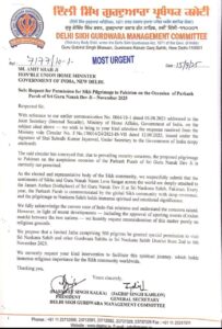 ਜਿਹੜਾ ਪਿਛਲੇ ਸਮੇਂ ਦੇ ਵਿੱਚ ਇੱਕ ਸਰਕਾਰ ਵੱਲੋਂ ਨੋਟੀਫਿਕੇਸ਼ਨ ਜਾਰੀ ਕਰਕੇ ਹਰ ਸਾਲ ਪਾਕਿਸਤਾਨ ਵਿਖੇ ਸ੍ਰੀ ਗੁਰੂ ਨਾਨਕ ਦੇਵ ਜੀ ਦੇ ਪ੍ਰਕਾਸ਼ ਪੁਰਬ ਮੌਕੇ ਸਿੱਖ ਸ਼ਰਧਾਲੂਆਂ ਦੇ ਜੱਥੇ ਤੇ ਪਾਬੰਦੀ ਲਗਾ ਦਿੱਤੀ ਸੀ। ਉਨ੍ਹਾਂ ਦਸਿਆ ਕਿ ਦਿੱਲੀ ਸਿੱਖ ਗੁਰਦੁਆਰਾ ਪ੍ਰਬੰਧਕ ਕਮੇਟੀ ਵੱਲੋਂ ਇਸ ਮਹੱਤਵਪੂਰਨ ਮਸਲੇ ਤੇ ਦਖ਼ਲ ਦਿਤਾ ਅਤੇ ਕੇਂਦਰ ਸਰਕਾਰ ਦੇ ਧਿਆਨ ਵਿੱਚ ਲਿਆਂਦਾ ਕਿ ਸਮੂਹ ਸਿੱਖ ਸੰਗਤਾਂ ਦੀ ਇਸ ਵਿਸ਼ੇ ਤੇ ਭਾਵਨਾਵਾਂ ਜੁੜੀਆਂ ਹੁੰਦੀਆਂ ਹਨ,ਕਿ ਉਹ ਸ੍ਰੀ ਗੁਰੂ ਨਾਨਕ ਦੇਵ ਜੀ ਦੇ ਪ੍ਰਕਾਸ਼ ਪੁਰਬ ਮੌਕੇ ਪਾਕਿਸਤਾਨ ਵਿਖੇ ਉਨ੍ਹਾਂ ਦੇ ਜਨਮ ਅਸਥਾਨ ਦੇ ਦਰਸ਼ਨ ਕਰ ਸਕਣ ਅਤੇ ਆਪਣੀ ਸ਼ਰਧਾ ਪ੍ਰਗਟ ਕਰ ਸਕਣ।