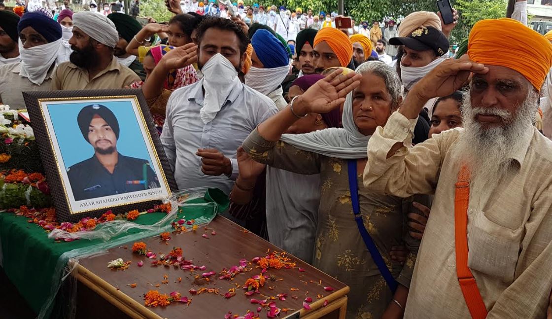 ਸ਼ਹੀਦ ਦੇ ਸਸਕਾਰ ਸਮੇਂ ਭਾਰਤੀ ਸੈਨਾ, ਪੰਜਾਬ ਸਰਕਾਰ, ਜ਼ਿਲ੍ਹਾ ਪਟਿਆਲਾ ਸਿਵਲ ਤੇ ਪੁਲਿਸ ਪ੍ਰਸ਼ਾਸ਼ਨ ਸਮੇਤ ਸਿਆਸੀ, ਸਮਾਜਿਕ, ਧਾਰਮਿਕ ਸੰਸਥਾਵਾਂ ਵੱਲੋਂ ਹਾਜ਼ਰ ਹੋਈਆਂ ਅਹਿਮ ਸ਼ਖ਼ਸੀਅਤਾਂ ਅਤੇ ਹਜ਼ਾਰਾਂ ਦੀ ਗਿਣਤੀ ‘ਚ ਪੁੱਜੇ ਆਮ ਲੋਕਾਂ ਨੇ ਸ਼ਹੀਦ ਨੂੰ ‘ਦੇਸ਼ ਭਗਤੀ ਅਤੇ ਸ਼ਹੀਦ ਰਾਜਵਿੰਦਰ ਸਿੰਘ ਅਮਰ ਰਹੇ” ਦੇ ਨਾਅਰੇ ਲਾਉਂਦਿਆਂ ਨਮ ਅੱਖਾਂ ਨਾਲ ਅੰਤਿਮ ਵਿਦਾਈ ਦਿੱਤੀ ਗਈ।