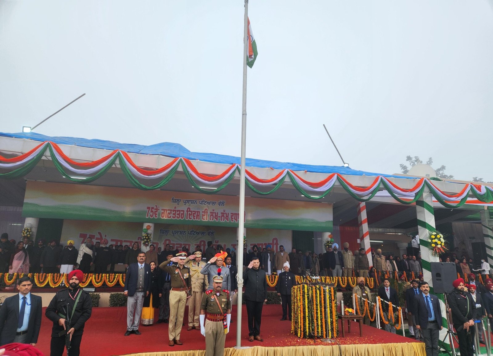 ਸ੍ਰੀ ਬਨਵਾਰੀ ਲਾਲ ਪੁਰੋਹਿਤ ਨੇ ਇੱਥੇ ਰਾਜਾ ਭਲਿੰਦਰਾ ਸਿੰਘ ਖੇਡ ਸਟੇਡੀਅਮ, ਪੋਲੋ ਗਰਾਊਂਡ ਵਿਖੇ ਕੌਮੀ ਤਿਰੰਗਾ ਝੰਡਾ ਲਹਿਰਾਉਣ ਤੋਂ ਬਾਅਦ ਸ਼ਾਨਦਾਰ ਪਰੇਡ ਦਾ ਜਾਇਜ਼ਾ ਲਿਆ ਅਤੇ ਬਾਅਦ ਵਿੱਚ ਮਾਰਚ ਪਾਸਟ ਤੋਂ ਸਲਾਮੀ ਲਈ। ਇਸ ਮੌਕੇ ਸੂਬਾ ਨਿਵਾਸੀਆਂ ਦੇ ਨਾਮ ਆਪਣੇ ਸੰਦੇਸ਼ ਵਿੱਚ ਪੰਜਾਬ ਦੇ ਰਾਜਪਾਲ ਨੇ ਗਣਤੰਤਰ ਦਿਵਸ ਦੀ ਹਾਰਦਿਕ ਵਧਾਈ ਦਿੰਦਿਆਂ ਇਸ ਦਿਨ ਨੂੰ ਆਪਣੇ ਰਾਸ਼ਟਰ ਤੇ ਆਪਣੀ ਪ੍ਰਭੁਤਾ ਦਾ ਜਸ਼ਨ ਮਨਾਉਣ ਤੇ ਸਨਮਾਨ ਕਰਨ ਦਾ ਦਿਨ ਕਰਾਰ ਦਿੱਤਾ।