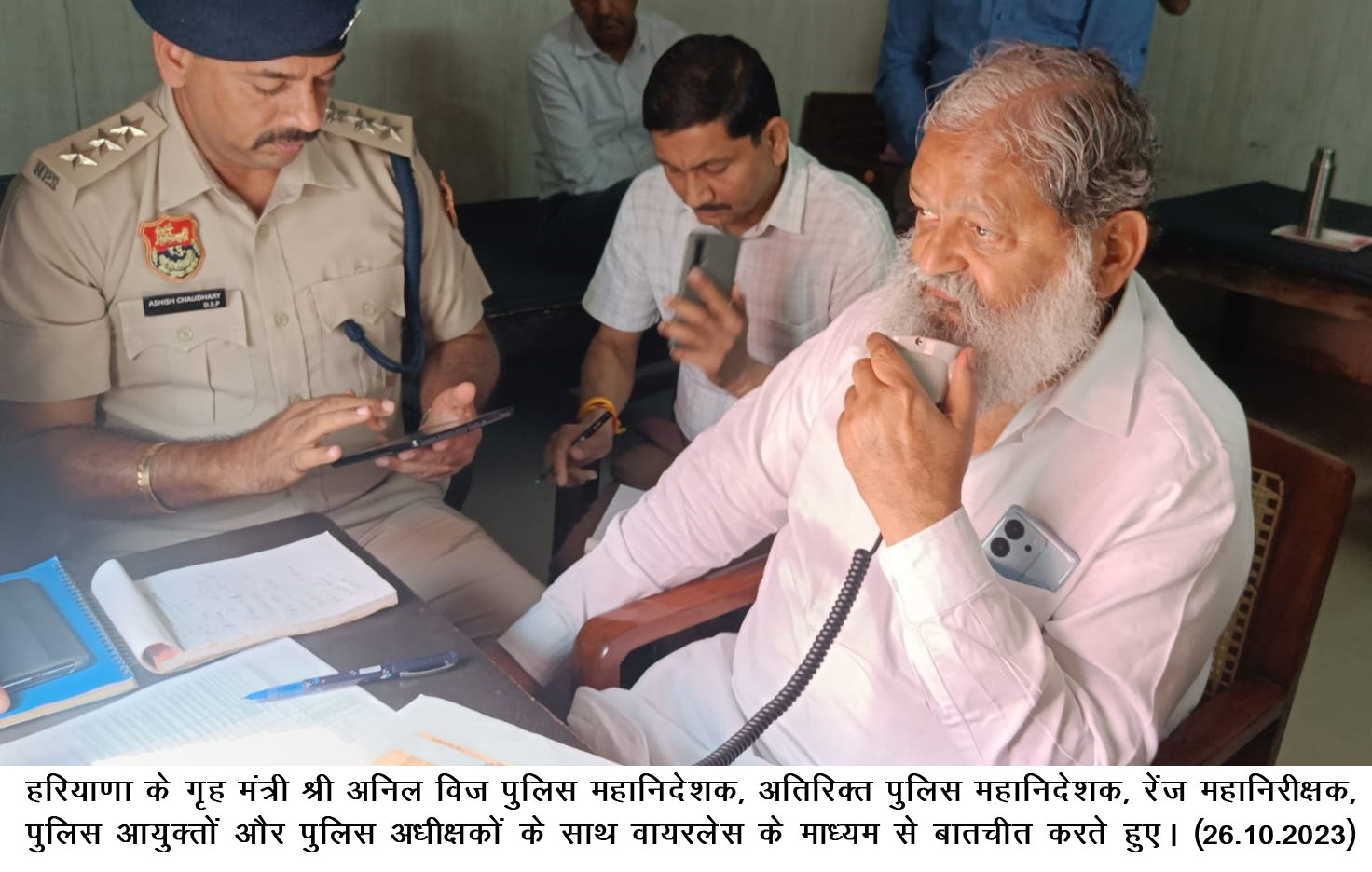 ਗ੍ਰਹਿ ਮੰਤਰੀ ਅੱਜ ਪੁਲਿਸ ਡਾਇਰੈਕਟਰ ਜਨਰਲ, ਏਡੀਜੀਪੀ ਲਾਅ ਐਂਡ ਆਰਡਰ, ਸਾਰੀਆਂ ਪੁਲਿਸ ਰੇਂਜਾਂ ਦੇ ਇੰਸਪੈਕਟਰ ਜਨਰਲ ਪੁਲਿਸ, ਪੁਲਿਸ ਕਮਿਸ਼ਨਰ ਅਤੇ ਸਬੰਧਤ ਜ਼ਿਲ੍ਹਿਆਂ ਦੇ ਪੁਲਿਸ ਸੁਪਰਡੈਂਟਾਂ ਨਾਲ ਵਾਇਰਲੈੱਸ (ਵਾਕੀ-ਟਾਕੀ) ਰਾਹੀਂ ਗੱਲਬਾਤ ਕਰ ਰਹੇ ਸਨ।