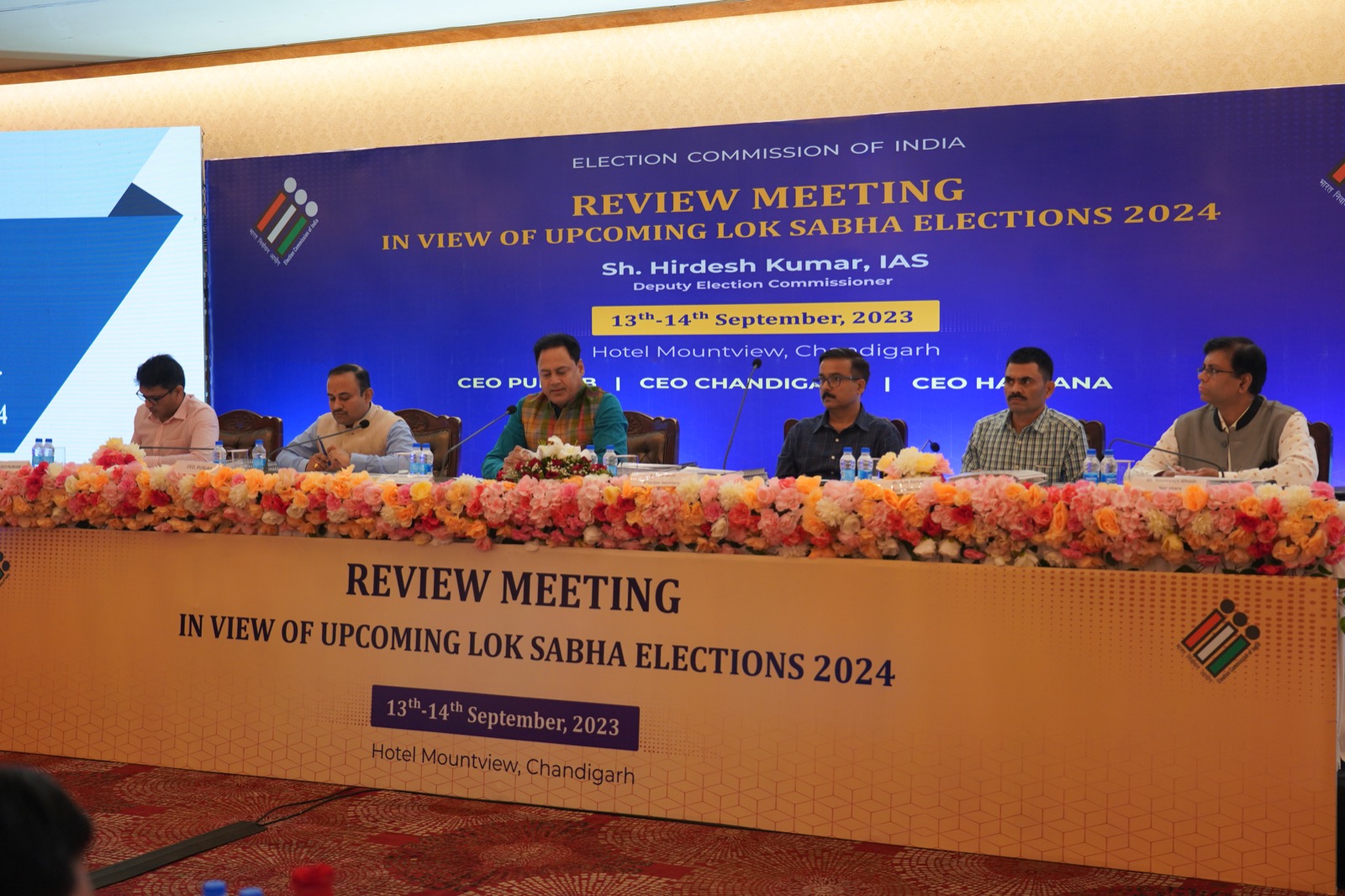 ਭਾਰਤੀ ਚੋਣ ਕਮਿਸ਼ਨ ਦੀ ਟੀਮ ਨੇ ਉਪ ਚੋਣ ਕਮਿਸ਼ਨਰ (ਡੀ.ਈ.ਸੀ.) ਹਿਰਦੇਸ਼ ਕੁਮਾਰ ਦੀ ਅਗਵਾਈ ਹੇਠ ਅੱਜ ਇੱਥੇ ਮੁੱਖ ਚੋਣ ਅਫ਼ਸਰ ਪੰਜਾਬ ਸਿਬਿਨ ਸੀ ਅਤੇ ਸਾਰੇ 23 ਡਿਪਟੀ ਕਮਿਸ਼ਨਰਾਂ-ਕਮ-ਜ਼ਿਲ੍ਹਾ ਚੋਣ ਅਫ਼ਸਰਾਂ (ਡੀ.ਈ.ਓਜ਼) ਨਾਲ ਸੂਬੇ ਵਿੱਚ ਲੋਕ ਸਭਾ ਚੋਣਾਂ ਦੀਆਂ ਤਿਆਰੀਆਂ ਅਤੇ ਵੋਟਰ ਸੂਚੀ ਦੀ ਵਿਸ਼ੇਸ਼ ਸੁਧਾਈ ਸਬੰਧੀ ਸਮੀਖਿਆ ਮੀਟਿੰਗ ਕੀਤੀ।