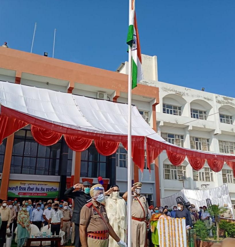 ਬਰਨਾਲਾ,15 ਅਗਸਤ (ਰਾਕੇਸ਼ ਗੋਇਲ/ਰਾਹੁਲ ਬਾਲੀ):- ਜ਼ਿਲ੍ਹਾ ਬਰਨਾਲਾ ਵਿਚ 74ਵਾਂ ਆਜ਼ਾਦੀ ਦਿਹਾੜਾ ਬਹੁਤ ਹੀ ਸਾਦੇ ਪਰ ਪ੍ਰਭਾਵਸ਼ਾਲੀ ਤਰੀਕੇ ਨਾਲ ਮਨਾਇਆ ਗਿਆ। ਇਸ ਮੌਕੇ ਟਰਾਂਸਪੋਰਟ ਅਤੇ ਜਲ ਸਪਲਾਈ ਤੇ ਸੈਨੀਟੇਸ਼ਨ ਮੰਤਰੀ ਸ੍ਰੀਮਤੀ ਰਜ਼ੀਆ ਸੁਲਤਾਨਾ ਵੱਲੋਂ ਕੌਮੀ ਝੰਡਾ ਲਹਿਰਾਉਣ ਦੀ ਰਸਮ ਅਦਾ ਕੀਤੀ ਗਈ।