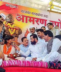 ਮਹਾਰਾਸ਼ਟਰ ਵਿੱਚ ਮਰਾਠਾ ਭਾਈਚਾਰੇ ਲਈ ਰਾਖਵਾਂਕਰਨ ਦੀ ਮੰਗ ਨੂੰ ਲੈ ਕੇ ਭੁੱਖ ਹੜਤਾਲ ’ਤੇ ਬੈਠੇ ਮਨੋਜ ਜਰਾਂਗੇ ਨੇ 17ਵੇਂ ਦਿਨ ਆਪਣੀ ਹੜਤਾਲ ਸਮਾਪਤ ਕਰ ਦਿੱਤੀ ਹੈ। ਮੁੱਖ ਮੰਤਰੀ ਏਕਨਾਥ ਸ਼ਿੰਦੇ ਨੇ ਅੱਜ ਉਨ੍ਹਾਂ ਨਾਲ ਮੁਲਾਕਾਤ ਕੀਤੀ ਅਤੇ ਕਿਹਾ ਕਿ ਸਰਕਾਰ ਮਰਾਠਾ ਭਾਈਚਾਰੇ ਲਈ ਰਾਖਵਾਂਕਰਨ ਵਾਸਤੇ ਵਚਨਬੱਧ ਹੈੇ। ਸ੍ਰੀ ਸ਼ਿੰਦੇ ਹੋਰਨਾਂ ਮੰਤਰੀਆਂ ਨਾਲ ਜਾਲਨਾ ਜ਼ਿਲ੍ਹੇ ਦੇ ਪਿੰਡ ਅੰਤਰਵਾਲੀ ਸਰਾਤੀ ਪਹੁੰਚੇ ਤੇ ਜਰਾਂਗੇ ਨਾਲ ਗੱਲਬਾਤ ਕੀਤੀ।