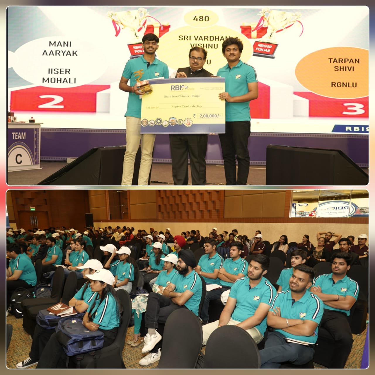 RBI90Quiz ਇੱਕ ਟੀਮ ਅਧਾਰਤ ਕਵਿਜ਼ ਮੁਕਾਬਲਾ ਹੈ, ਜਿਸ ਨੂੰ ਕਈ ਪੜਾਵਾਂ ਵਿੱਚ ਆਯੋਜਿਤ ਕੀਤਾ ਜਾ ਰਿਹਾ ਹੈ। ਆਨਲਾਈਨ ਪੜਾਅ 19 ਤੋਂ 21 ਸਤੰਬਰ 2024 ਤੱਕ ਆਯੋਜਿਤ ਕੀਤਾ ਗਿਆ ਸੀ। ਆਨਲਾਈਨ ਪੜਾਅ ਵਿੱਚ ਪ੍ਰਦਰਸ਼ਨ ਦੇ ਅਧਾਰ ‘ਤੇ, ਕਾਲਜ ਦੀਆਂ ਟੀਮਾਂ ਨੂੰ ਰਾਜ ਪੱਧਰੀ ਰਾਊਂਡ ਵਿੱਚ ਭਾਗ ਲੈਣ ਲਈ ਚੁਣਿਆ ਗਿਆ। ਪੰਜਾਬ ਲਈ RBI90Quiz ਦਾ ਰਾਜ ਪੱਧਰੀ ਰਾਊਂਡ ਹੋਟਲ “ਦਾ ਲਲਿਤ” ਚੰਡੀਗੜ੍ਹ ਵਿਖੇ ਆਯੋਜਿਤ ਕੀਤਾ ਗਿਆ, ਜਿੱਥੇ 134 ਵਿਦਿਆਰਥੀਆਂ (67 ਟੀਮਾਂ) ਨੇ ਹਿੱਸਾ ਲਿਆ। ਲਵਲੀ ਪਰੋਫੈਸ਼ਨਲ ਯੂਨਿਵਰਸਿਟੀ, ਜਲੰਧਰ ਦੀ ਟੀਮ, ਜਿਸ ਵਿੱਚ ਵੀ. ਸ਼ਰੀਵਰਧਨ ਅਤੇ ਡੀ. ਵਿਸ਼ਨੂ ਵਰਧਨ ਸ਼ਾਮਲ ਹਨ ਜੇਤੂ ਟੀਮ ਵਜੋਂ ਉਭਰੀ, ਆਈ.ਆਈ.ਐਸ.ਈ.ਆਰ ਮੋਹਾਲੀ ਅਤੇ ਰਾਜੀਵ ਗਾਂਧੀ ਨੈਸ਼ਨਲ ਯੂਨਿਵਰਸਿਟੀ ਆਫ ਲਾਅ, ਪਟਿਆਲਾ ਦੀਆਂ ਟੀਮਾਂ ਕ੍ਰਮਵਾਰ ਦੂਜੇ ਅਤੇ ਤੀਜੇ ਸਥਾਨ ‘ਤੇ ਰਹੀਆਂ। ਚੋਟੀ ਦੀਆਂ ਤਿੰਨ ਟੀਮਾਂ ਨੂੰ ਇਨਾਮ ਵਜੋਂ ਕ੍ਰਮਵਾਰ 2 ਲੱਖ ਰੁਪਏ, 1.5 ਲੱਖ ਰੁਪਏ ਅਤੇ 1 ਲੱਖ ਰੁਪਏ ਦਿੱਤੇ ਗਏ।
