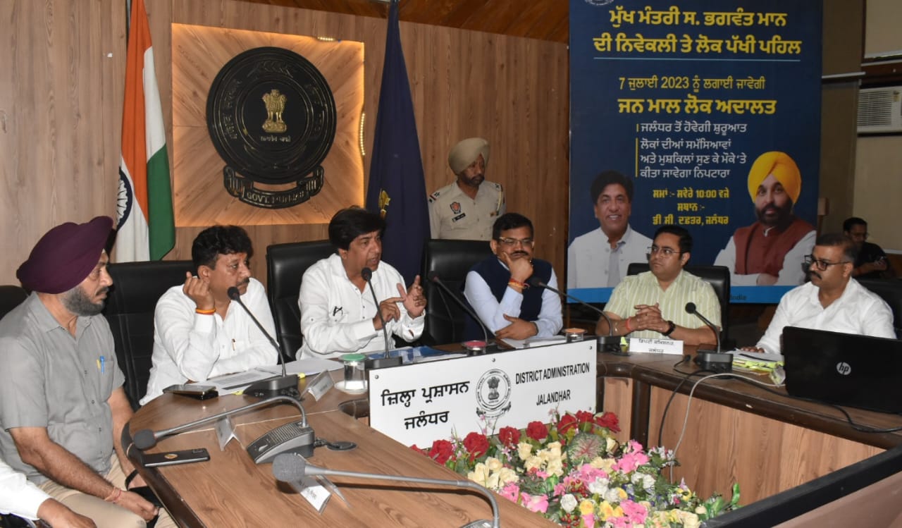 ਪੰਜਾਬ ਦੇ ਮਾਲ ਮੰਤਰੀ ਬ੍ਰਮ ਸ਼ੰਕਰ ਜਿੰਪਾ ਨੇ ਮਾਲ ਵਿਭਾਗ ਨਾਲ ਸਬੰਧਤ ਲੋਕਾਂ ਦੀਆਂ ਸ਼ਿਕਾਇਤਾਂ ਦਾ ਮੌਕੇ ‘ਤੇ ਨਿਪਟਾਰਾ ਕਰਨ ਲਈ ਅੱਜ ਜਲੰਧਰ ਤੋਂ ਪਹਿਲੀ ਜਨ ਮਾਲ ਲੋਕ ਅਦਾਲਤ ਦੀ ਸ਼ੁਰੂਆਤ ਕੀਤੀ, ਜਿਸ ਵਿੱਚ 1500 ਤੋਂ ਵੱਧ ਲੋਕਾਂ ਨੇ ਭਾਗ ਲਿਆ। ਇਸ ਜਨ ਮਾਲ ਲੋਕ ਅਦਾਲਤ ਦੌਰਾਨ 816 ਇੰਤਕਾਲ ਕੇਸਾਂ ਦਾ ਮੌਕੇ ‘ਤੇ ਫੈਸਲਾ ਕੀਤਾ ਗਿਆ ਅਤੇ 90 ਸ਼ਿਕਾਇਤਾਂ ਪ੍ਰਾਪਤ ਹੋਈਆਂ, ਜਿਨ੍ਹਾਂ ਦੇ ਜਲਦ ਨਬੇੜੇ ਲਈ ਮਾਲ ਮੰਤਰੀ ਵੱਲੋਂ ਸਬੰਧਤ ਅਧਿਕਾਰੀਆਂ ਨੂੰ ਲੋੜੀਂਦੇ ਦਿਸ਼ਾ-ਨਿਰਦੇਸ਼ ਦਿੱਤੇ ਗਏ।